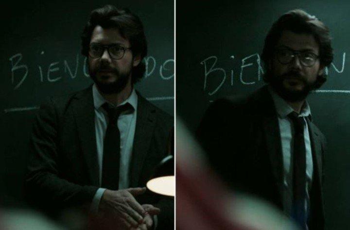 Aquí se nota que definitivamente no grabaron la escena el mismo día, pues el “Bienvenidos” de El Profesor cambia de un momento a otro ¡Qué curioso!