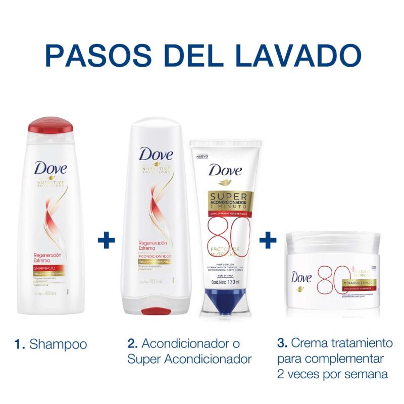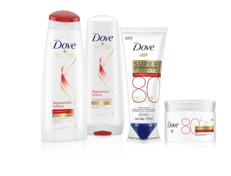 Hablamos de Dove Regeneración Extrema que incluye productos de uso diario como shampoo y acondicionador, además de productos que entregan un cuidado más profundo y especializado, como es el caso del Súper Acondicionador y la Máscara de Tratamiento.