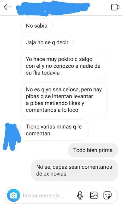 Tras la aclaración, “Lu” se excusó diciendo que no sabía del parentesco, pero tampoco es que sea celosa: “No sabía, jajá no sé que decir. Yo hace muy poquito que salgo con él y no conozco a nadie de su familia todavía. No es que yo sea celosa, pero hay pibas que se intentan levantar a pibes metiendo likes y comentarios a lo loco. Tiene varias minas que le comentan”.