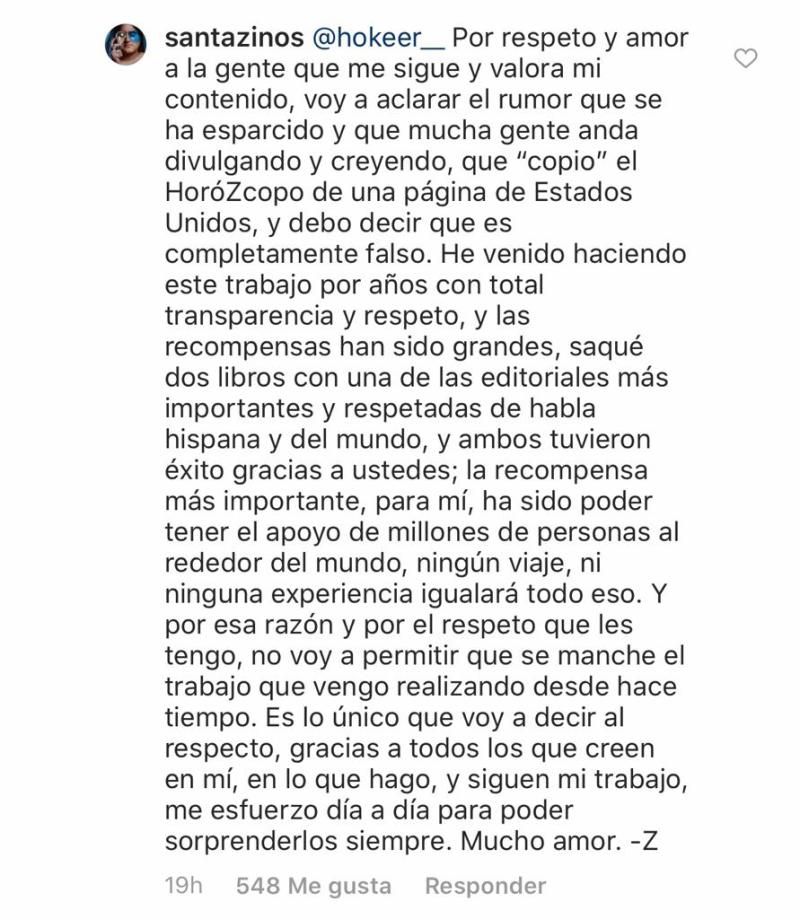 “He venido haciendo este trabajo por años con total transparencia y respeto, y las recompensas han sido grandes. Saqué dos libros con una de las editoriales más importantes y respetadas del habla hispana y del mundo, y ambos tuvieron éxito gracias a ustedes”, escribió en Instagram.