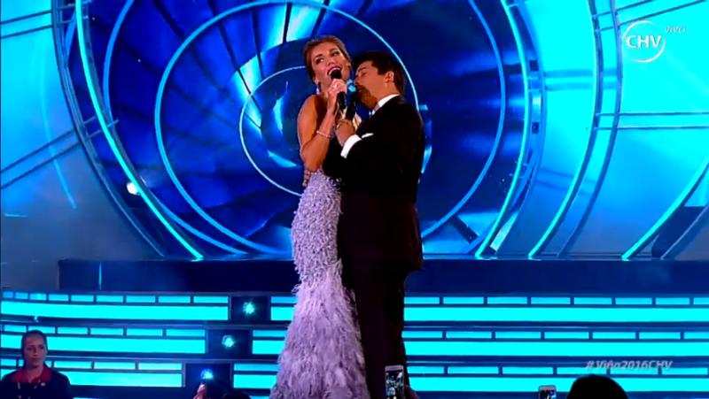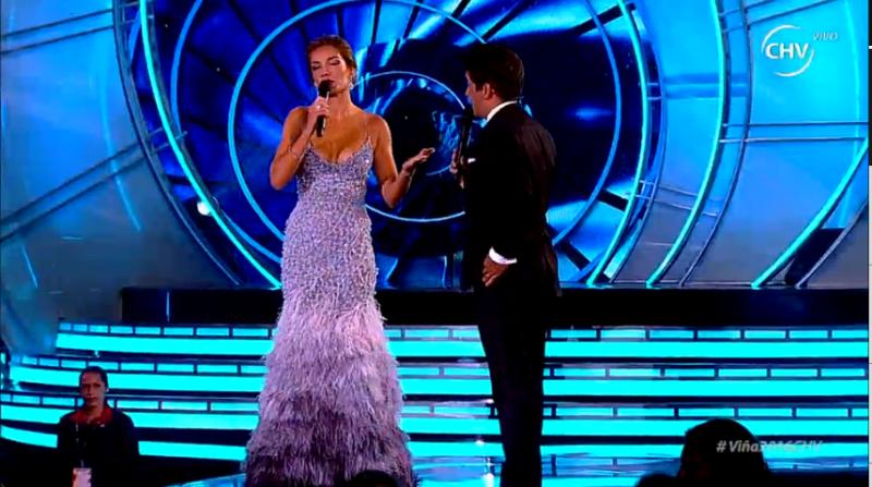 ¡Y comenzó la cuarta noche del Festival! Los animadores Carola de Moras y Rafael Araneda aparecieron con un look más bien ochentero, para “precalentar” un poco la llegada del gran Lionel Richie.