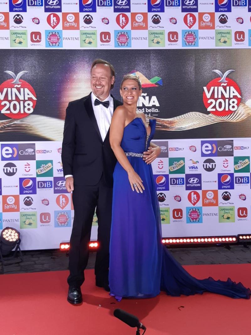Con un diseño de Heri Levi y muy bien acompañada desfiló Maca Tondreau en la alfombra roja de Viña, sin que se comentara mucho sobre su look.