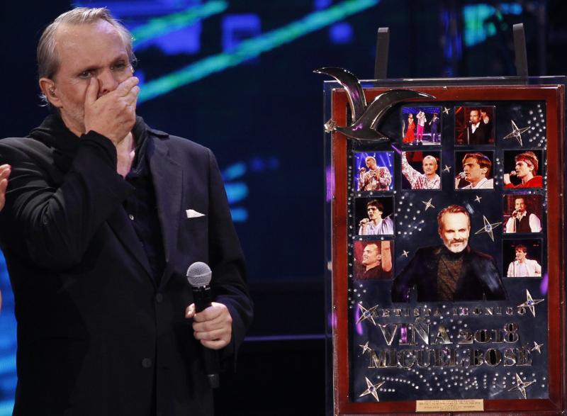 El reconocimiento que los animadores le entregaron a Miguel Bosé por 10 presentaciones en la Quinta Vergara se transformó en un personaje más en este Festival.