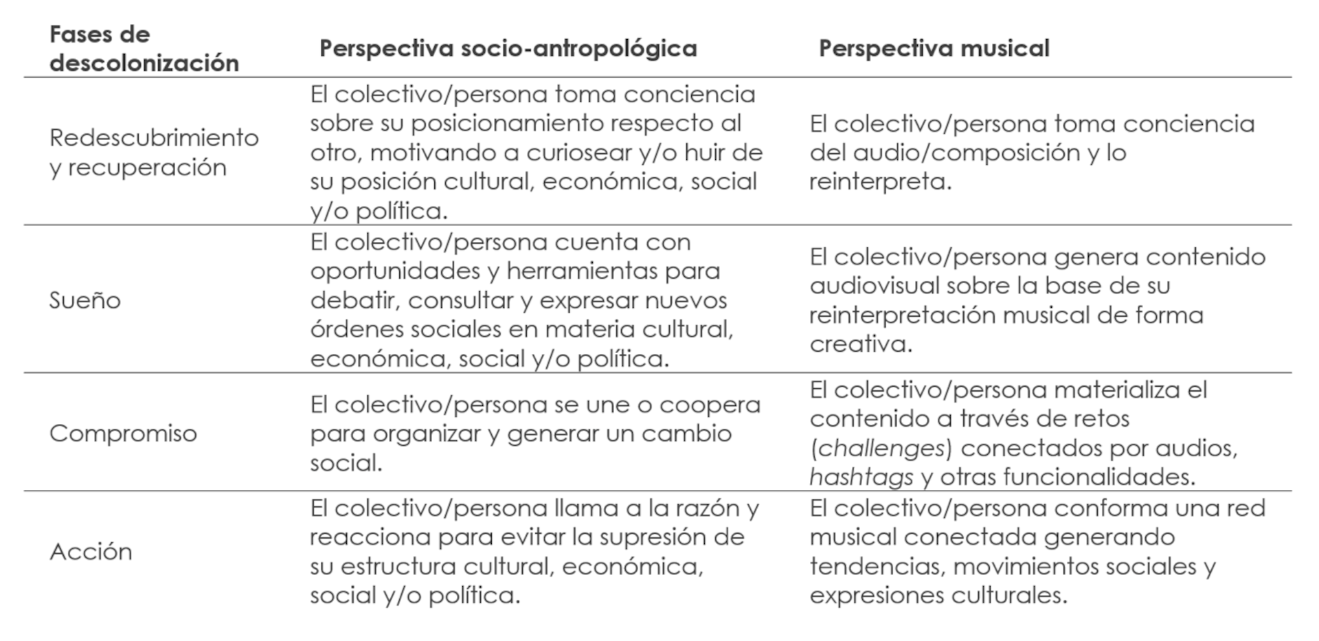 En concreto, estudiaba cómo estos contenidos se formulan bajo un proceso de “descolonización musical”, entendida como la emancipación del proceso de producción industrial, muy similar a la descolonización socio-antropológica.