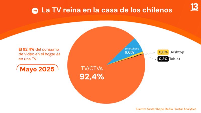 La televisión abierta no solo está viva, sino que reina en los hogares en Chile. El informe revela que un asombroso 92% del consumo de video en el hogar se realiza a través de televisores y CTVs (Connected TVs). Esta estadística subraya la capacidad inigualable de la TV para ser el epicentro del entretenimiento y la información familiar, garantizando una conexión masiva e instantánea con la audiencia.