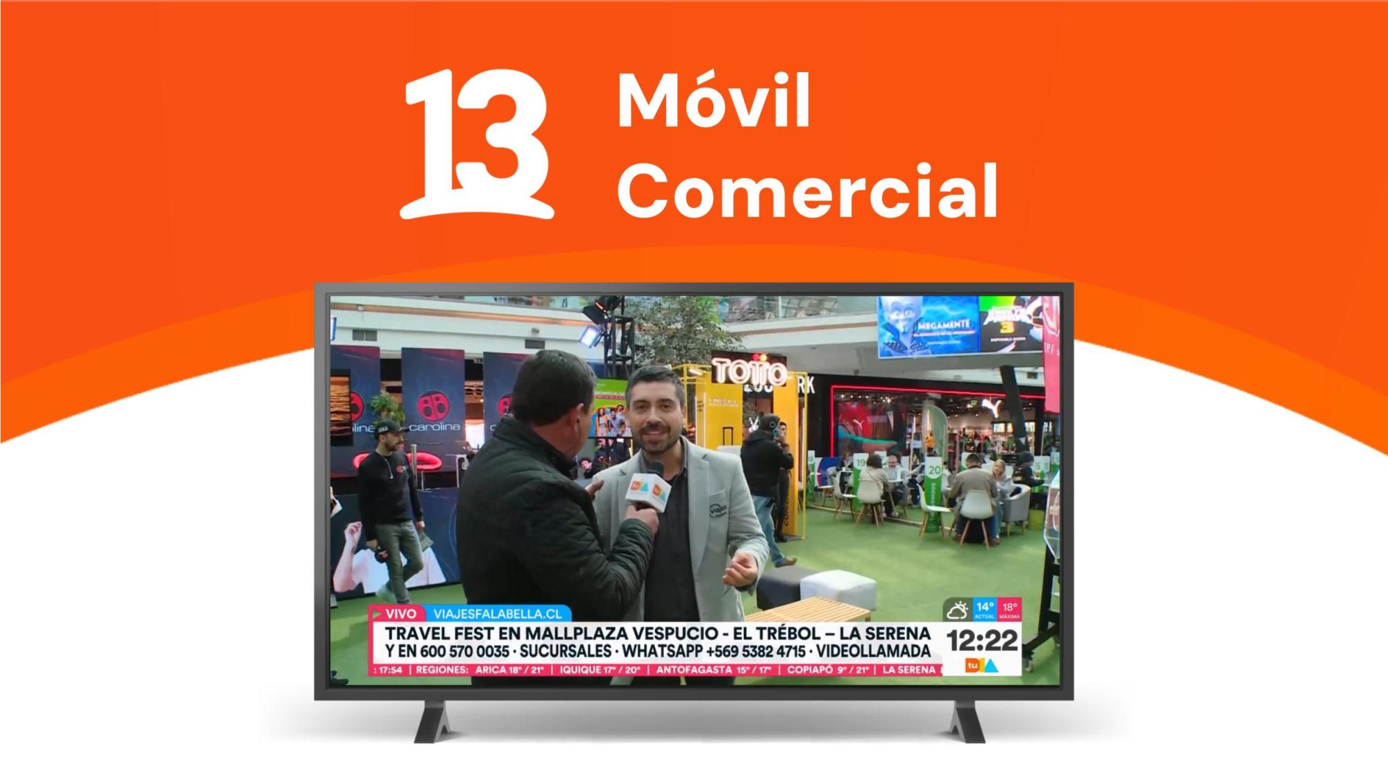 Móvil Comercial Compartir Integra a tu marca de manera orgánica y haz que el contenido del programa gire en torno a ti, en directo desde el lugar que necesites. Exclusivo en Tu Día, Hay que Decirlo y T13 Finde. Ejemplo:
