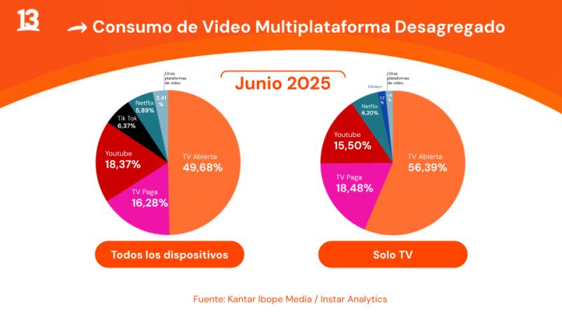 TV Abierta lidera el consumo de video en Chile y El 13 se consolida como referente en audiencias clave - Junio 2025