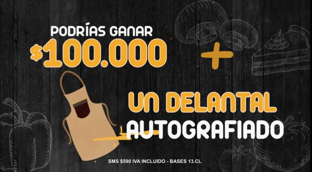 Concurso programa de cocina Imagen Archivo Base programa de cocina Ganador Programa de Cocina Bajada Envía "M" al 5556 y participa por $100.000 y un delantal autografiado.