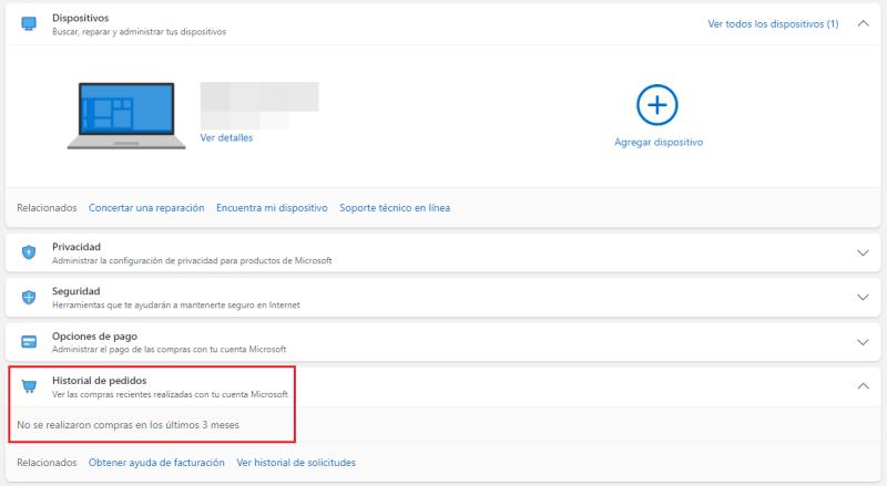 Una vez hayas iniciado sesión, busca el apartado de Historial de Pedidos. La configuración predeterminada de Microsoft te mostrará los últimos tres meses, pero puedes ir más atrás haciendo click en Ver Historial de Solicitudes, aplicando diferentes filtros temporales.
