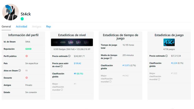 De acuerdo con la información recopilada por steamladder (vía PC Gamer), el usuario de Steam conocido como St4ck tiene la cuenta más valiosa de toda la plataforma con un valor de $279.114 de dólares (USD), algo así como $198.151.941 millones de pesos chilenos (CLP).