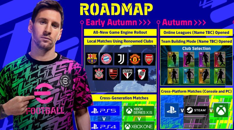 eFootball, que tiene como principales figuras y embajadores tanto a Messi como a Neymar, debutará en todo el mundo el próximo 30 de septiembre de 2021 para PC, PS4, Xbox One, PS5 y Xbox Series X|S. También llegará a dispositivos móviles con una versión optimizada, pero aún no tiene fecha de lanzamiento en iOS y Android.