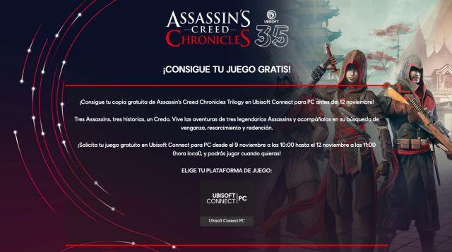 ¿Te estabas quedando sin títulos que jugar? Tenemos buenas noticias para los jugadores de PC, ya que Ubisoft está celebrando sus 35 años y para festejarlo está regalando una serie de títulos y complementos. En este caso se trata de Assassin's Creed Chronicles Trilogy en PC.