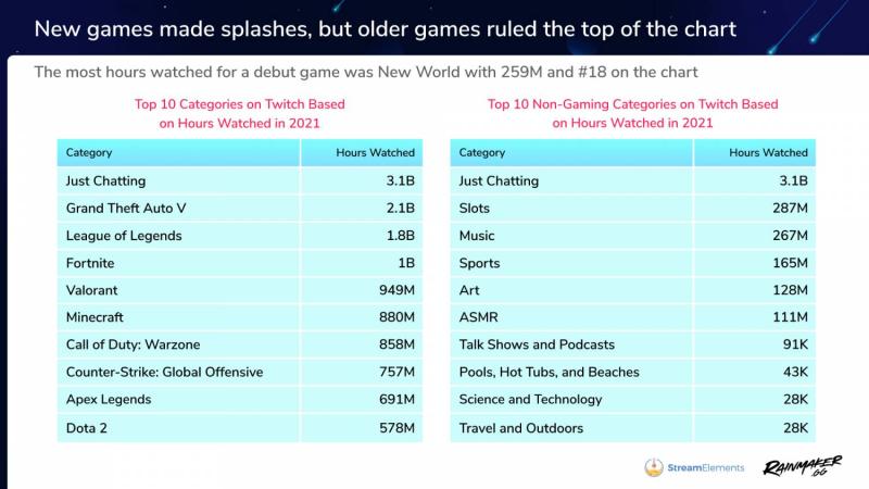 A la quinta entrega de la saga principal no le basta con sus registros. De acuerdo con el estudio realizado por Stream Elements, GTA 5 es el juego más visto del año en Twitch con 2.100 millones de horas de visualización, únicamente superado por los canales de “just chatting” en la plataforma de streaming, que ha logrado 3.100 millones de horas.