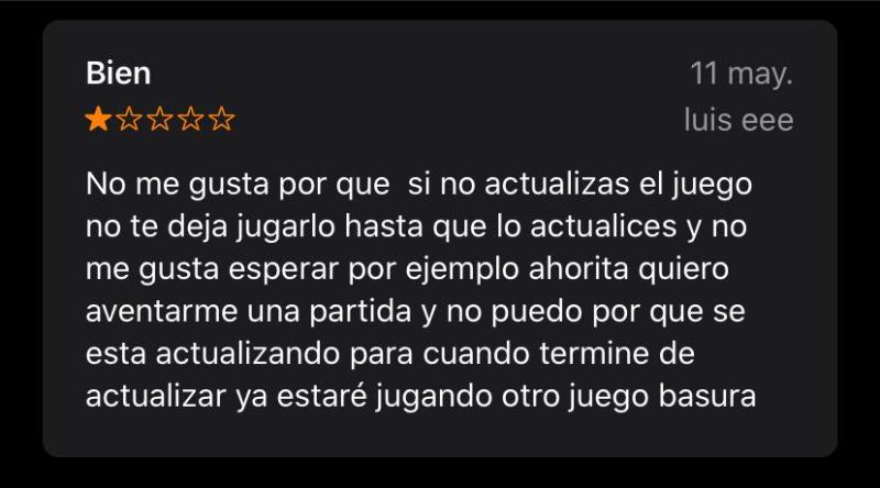 Dejar una reseña en una aplicación para dar tu opinión de ella es algo bastante usual entre los amantes de los juegos de teléfono. Desde una recomendación al desarrollador hasta consejos para quienes planean descargarla, es TÚ espacio para comentar libremente sobre tu experiencia con el juego.