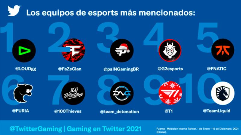 Twitter reveló algunos detalles estadísticos de su popular red social, correspondientes al año 2021 recién finalizado, se hace un análisis completo sobre los clubes, ligas, jugadores y contenidos más populares de los Esports durante el 2021 en Twitter