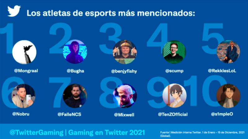 Finalmente, los atletas y deportistas más mencionados en Twitter el pasado 2021. En primer lugar aparece Mongraal, seguido de Bugha y Benjyfishy, todos de Fortnite. Tenemos que remontarnos al cuarto lugar para encontrar a Scump de Call of Duty, el primero del Top10 que no pertenece al Battle Royale de Epic Games.