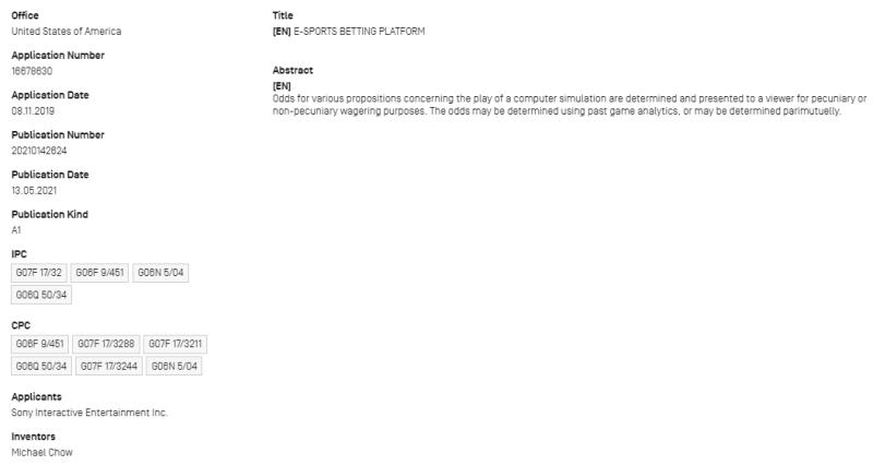 Tal y como hacen eco nuestros compañeros de VidaExtra, la patente fue registrada en 2019 con el nombre de “E-Sports Betting Platform” a nombre de Sony Interactive Entertainment (PlayStation). Pese a llevar casi 2 años registrada, no se había hecho pública hasta el pasado 13 de mayo.