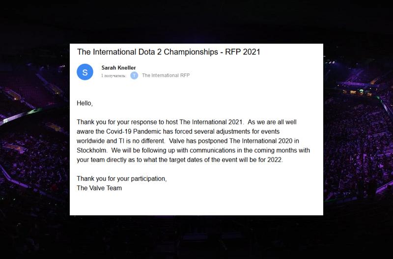 De acuerdo a la filtración de un correo publicado por la Federación de Esports de Bielorrusia en la red social VK, el campeonato mundial de Dota 2, The International, sería pospuesto hasta el 2022.