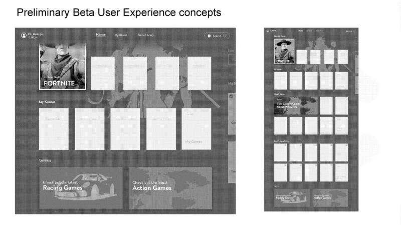 Pero no acaba ahí; en el correo filtrado hay algunas imágenes que muestran una maqueta de la interfaz que iba a tener Project Storm, en la que solo aparece Fortnite. Además, se indica que Walmart planeaba que el servicio funcionara en Windows al mismo tiempo que contaría con soporte para otras tiendas digitales como Steam, Uplay, Origin, Battle.net, Bethesda o la propia Epic Games Store.