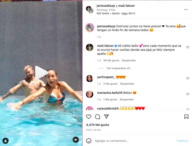 Fuera de la pista de baile, pudimos ver el registro de una divertida coreografía protagonizada por Janisse y Matías en la cuenta oficial de la bailarina, donde aparecen muy agusto disfrutando de la piscina mientras bailan al ritmo de Gettin' Jiggy Wit It de Will Smith.