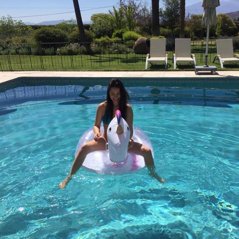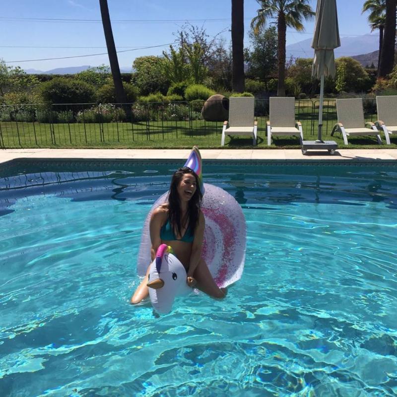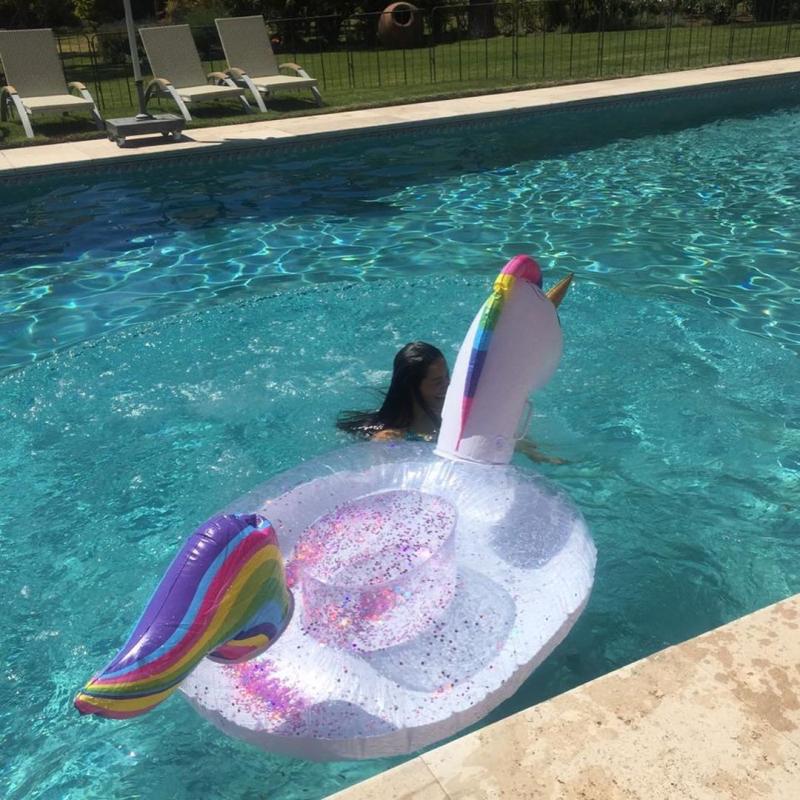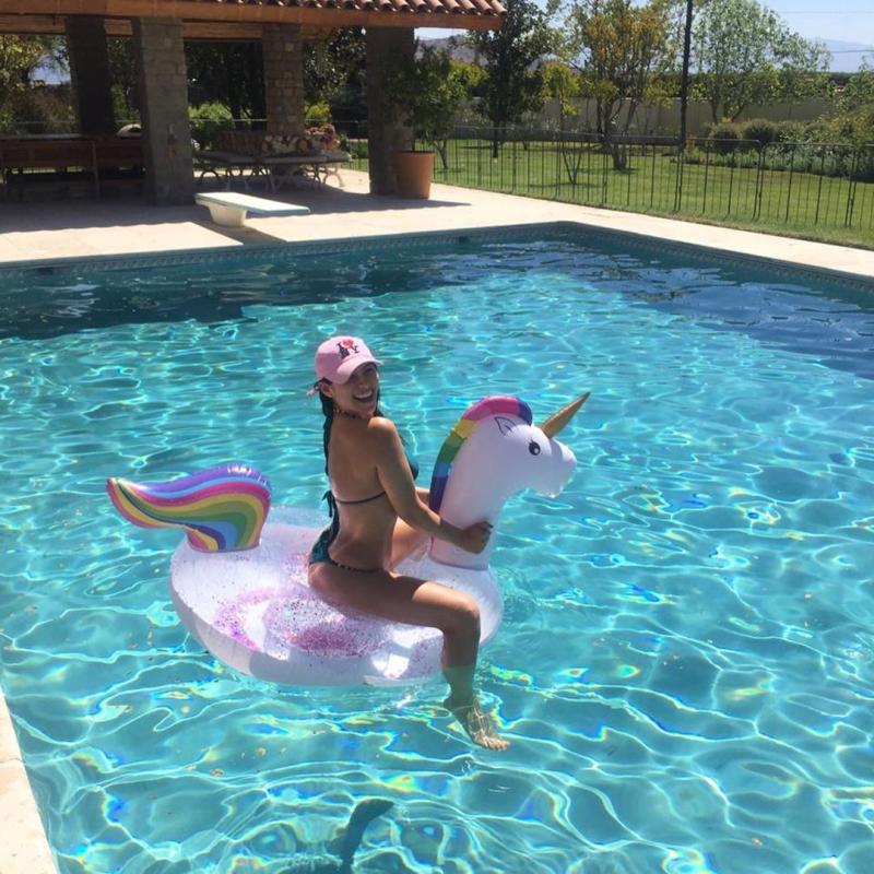 La actriz compartió una serie de fotografías en las que aparece jugando con un unicornio inflable aprovechando las altas temperaturas.