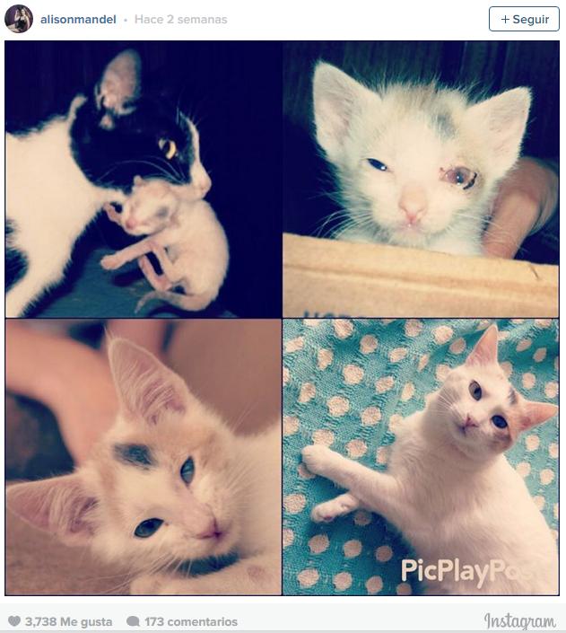 Por ejemplo, la historia de su gato Muamia, según relata en Instagram se la encontró después de pasar un muy mal momento como extra en un trabajo, la gatita era solo "una laucha que las hormigas se estaban comiendo" y ella decidió ayudarla. Ella escribe: