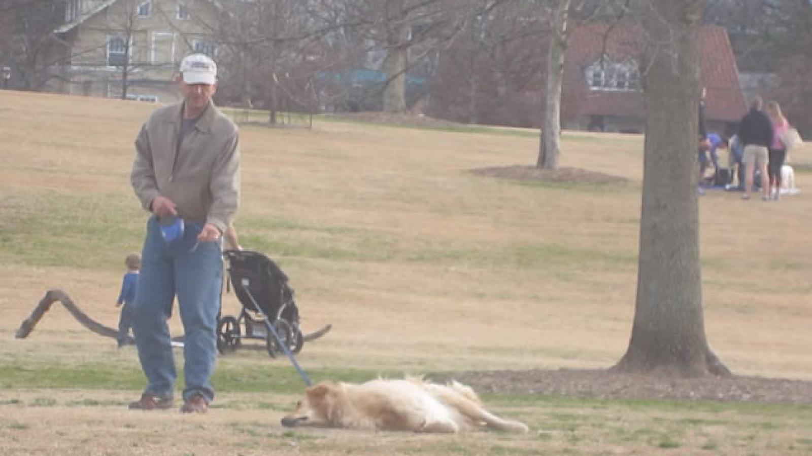 Perro se hace el muerto para que su dueño no lo saque del parque