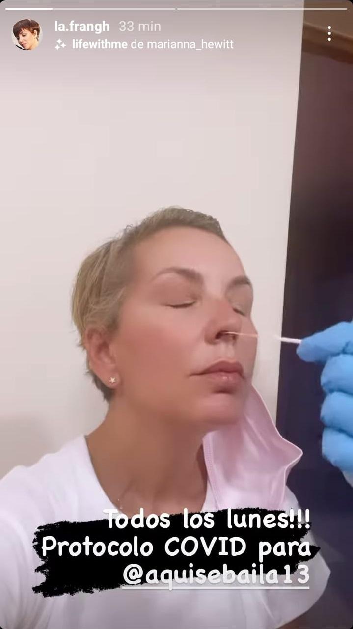 "Como todos los lunes... protocolo covid para @aquisebaila13", escribió Fran, quien se grabó mientras escuchaba las instrucciones de la profesional a cargo.