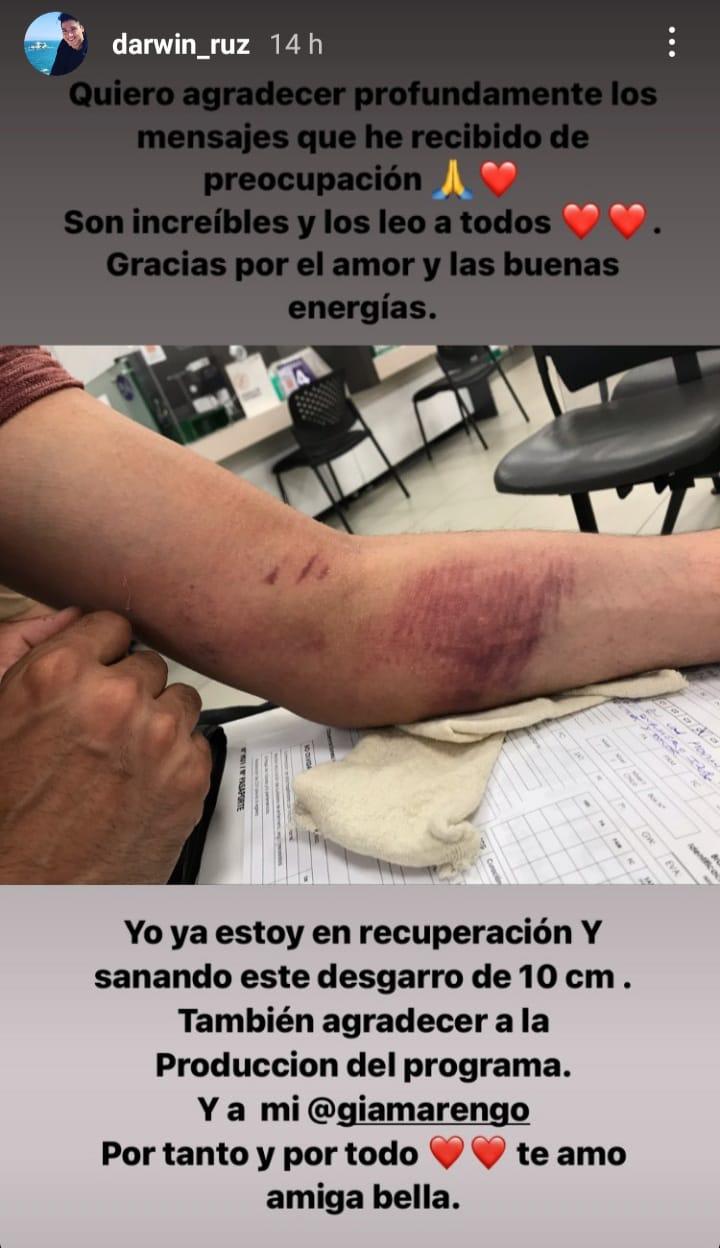 Darwin Ruz agradeció el apoyo mostrando imágenes de su dura lesión