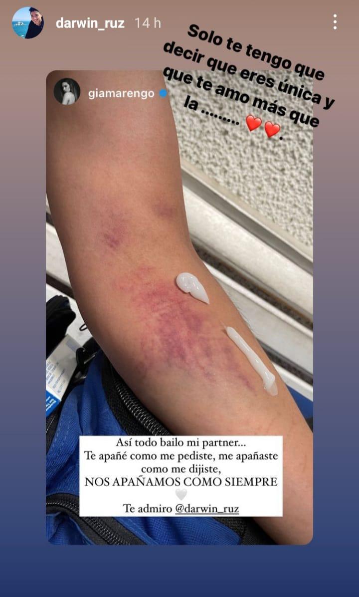 En su cuenta de Instagram, Darwin Ruz expresó palabras de afecto, tanto para el público que le ha hecho llegar su apoyo por redes sociales, como también a su pareja en "Aquí se Baila", quien también le compartió un bello mensaje.