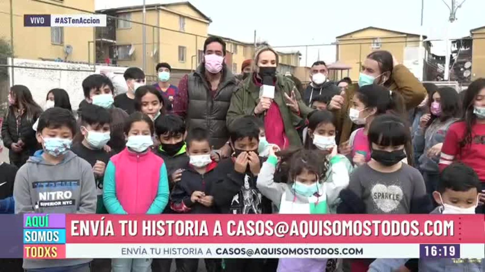 Por ello, comenzamos esa versión de Aquí Somos Todos en Acción directamente desde la Villa Padre Hurtado de Puente Alto, donde conocimos la historia de los vecinos y vecinas que se motivaron para generar actividades para los adultos y niños que estaban encerrados en sus blocks a causa de la pandemia.