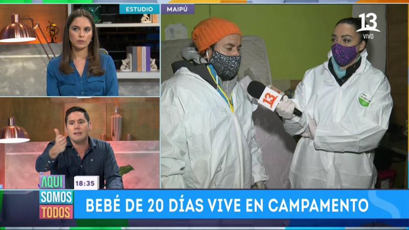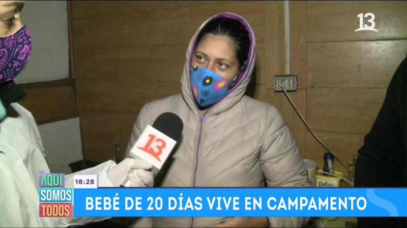 Durante la transmisión, Clarisa nos mostró el caso de una pareja de venezolanos que tienen una bebé de tan solo un mes de nacida, y que se vieron obligados en arrendar una pieza en el campamento porque no tenían dinero suficiente para pagar el mes de arriendo y de comisión que les pidieron en diversos lugares.
