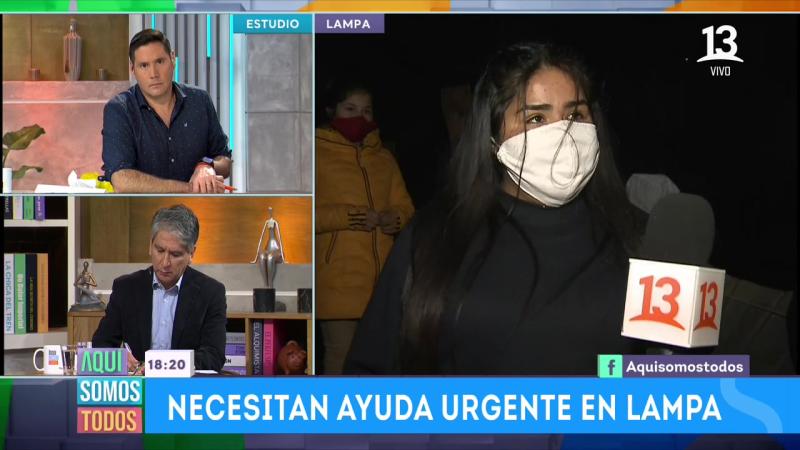 Max Collao, periodista de "Aquí Somos Todos", se trasladó durante la transmisión hasta la comuna de Lampa para mostrarnos las condiciones de 42 familias que sufrieron las inclemencias del tiempo.