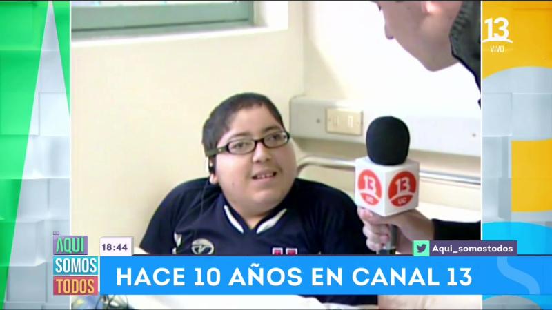 En "Aquí Somos Todos" Ángeles Araya, presentadora del programa, revivió la primera vez que conocimos a Hugo, hace 10 años atrás, esto cuando el matinal del Canal 13, "Viva la mañana", se dirigió hasta el centro Teletón para conocer su historia.