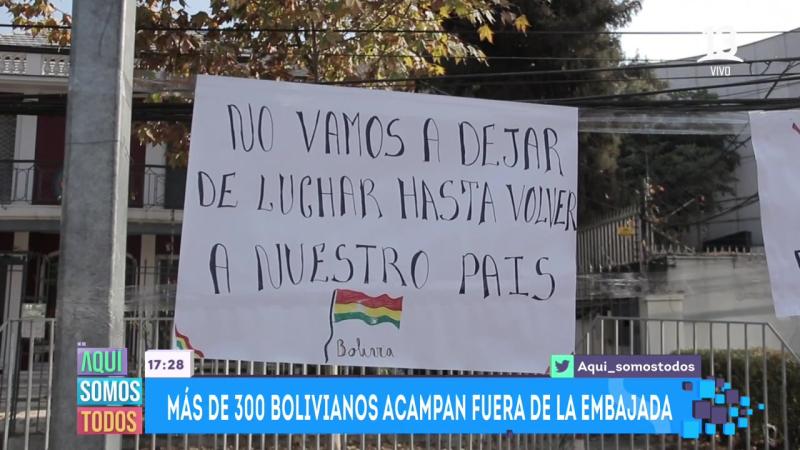 Más de 300 personas, entre niños y adultos, se encuentran en el exterior del consulado boliviano, en Santiago, para pedirle a las autoridades de su país que los envíen de vuelta en un vuelo humanitario.