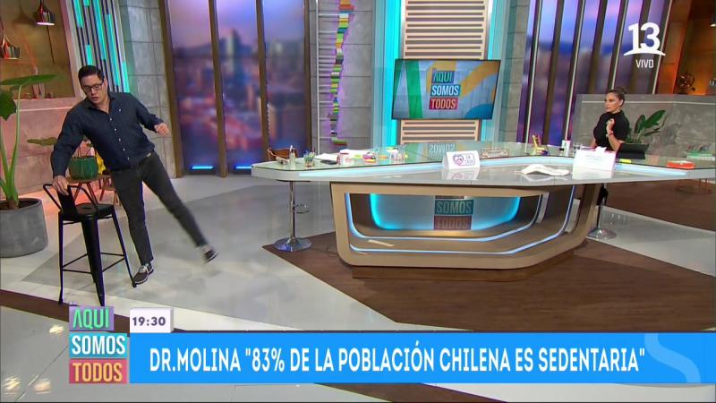 El invitado en el programa, que colocó a Pancho Saavedra a ejercitarse, explicó que más del "83% de la población chilena es sedentaria", motivo por el cual invitó al público a seguir sencillas rutinas de ejercicio que los ayudarán a mantener la musculatura durante la cuarentena.
