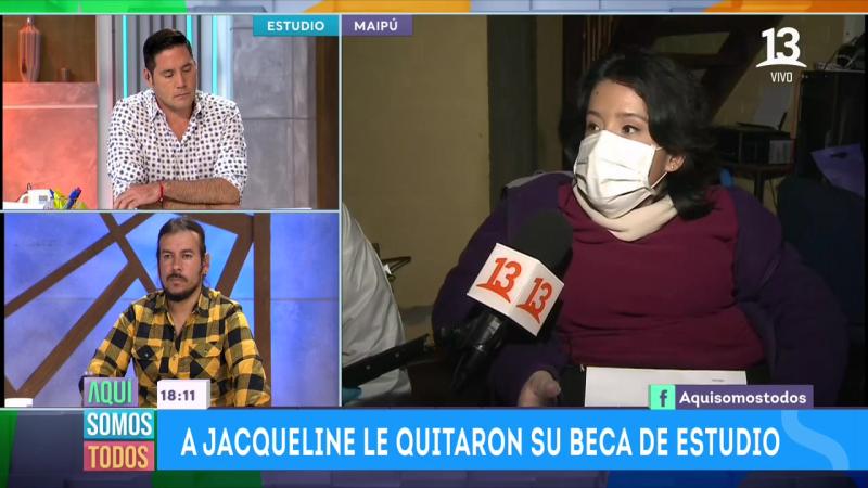 Jacqueline, joven de 25 años que vive en la comuna de Maipú, conversó con Max Collao, periodista del programa, sobre el motivo por el cual perdió su beca universitaria.