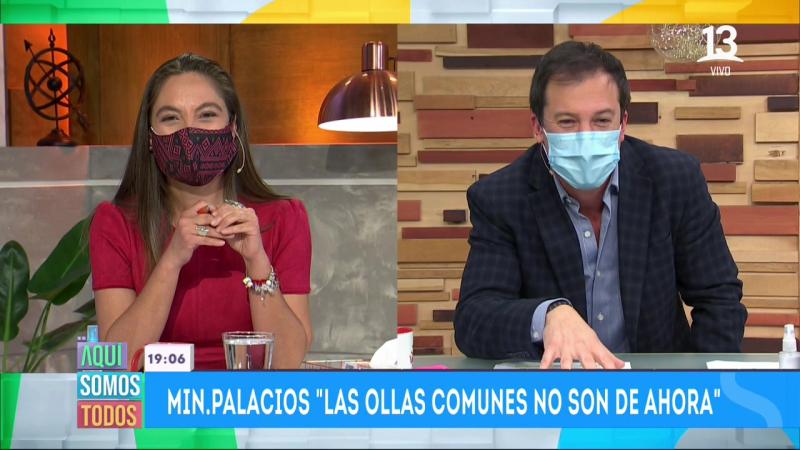 El Ministro de Economía, Lucas Palacios, conversó en "Aquí Somos Todos" sobre un nuevo plan que servirá para apoyar a las ollas comunes y que nació de una idea de Ángeles Araya, presentadora del programa.