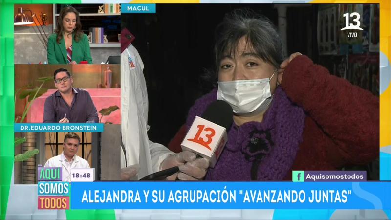 Directamente desde la comuna de Macul, en "Aquí Somos Todos", conversamos con Alejandra, protagonista del capítulo que se tomó el programa para conversarnos sobre su labor con la agupación "Avanzando Juntas", movimiento que ayuda a más de 500 niños con cáncer en todo el país.