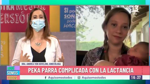 En ese contexto es que la actriz, que fue madre por primera vez hace solo dos semanas, presentó a su hija en televisión, mientras conversaba con las doctoras del programa las dificultades que ha presentado con la lactancia.