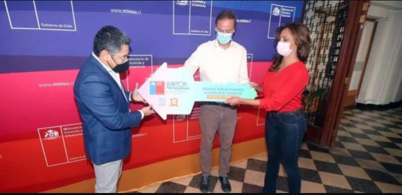 El ministro de Vivienda, Felipe Ward, entregó al equipo una llave simbólica, en referencia a la casa propia, con la inscripción: “Gracias por ayudarnos a cumplir el sueño de miles de familias”.