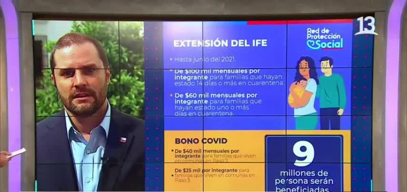 Finalmente, generamos un contacto con el ministro Secretario General de Gobierno, Jaime Bellolio, quien entregó todos los detalles sobre la extensión de los beneficios estatales para ir en ayuda de las personas, considerando que desde este jueves 171 comunas a retroceder a cuarentena total.