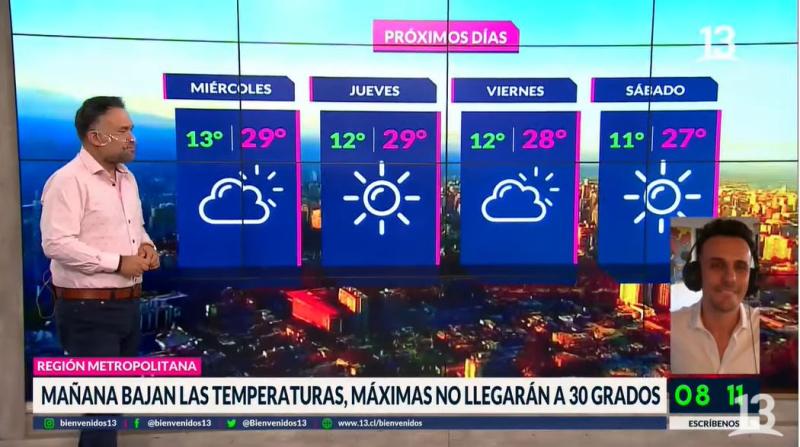 Después, nos sorprendimos con un informe del tiempo muy particular, ya que, desde mañana bajarán las temperaturas en la capital y tendremos nubes y menos de 30 grados en algunos puntos de la región Metropilitana, siempre con el análisis de nuestro meteorólogo, Gianfranco Marcone.