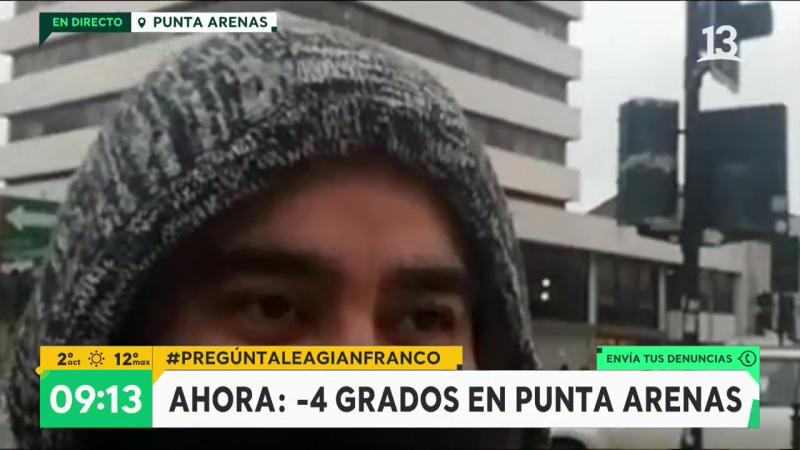 Y es que el frío se está sintiendo muy fuerte en las comunas del extremo sur del país. Para conocer más detalles nos contactamos con Fernando Andrade desde Punta Arenas, donde la mínima llegó a los -8 grados.