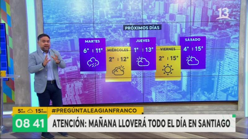 Esta mañana nuestro meteorólogo Gianfranco Marcone nos informó del tiempo ¿A qué hora podría llover en Santiago y otras regiones de nuestro país?