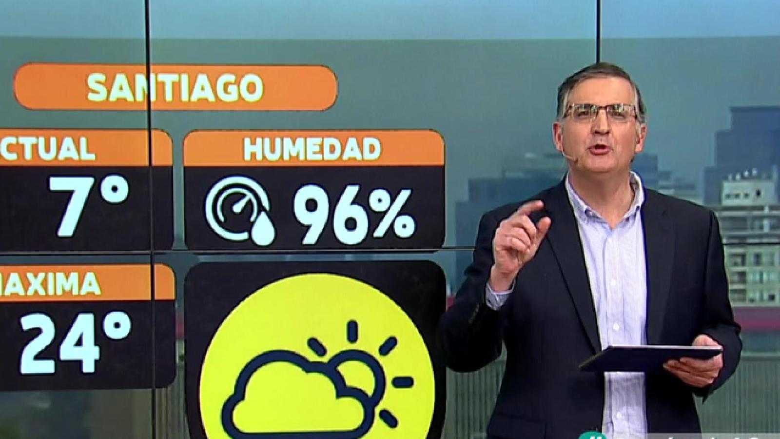 Santiago amaneció sin frío matinal y con cielo parcial con 7 grados, pero la máxima alcanzará los 24 grados, los próximos días descienden un poco las máximas pero se mantiene agradable hasta el lunes que la máxima será de 13 grados. El norte estará con el litoral cubierto y el interior despejado con 24 grados, la zona central con máximas de 17 grados, y el litoral cubierto variando a nublado con 15 y el sur con nubosidad todo el día y máximas que rondan los 10 grados.