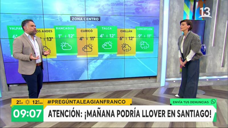 En regiones en tanto, un frío amanecer se registró en Calama con -1 grados de mínima, mientras que Desde la Región de la Araucanía y hasta Los Lagos esperan mucha lluvia y frio.
