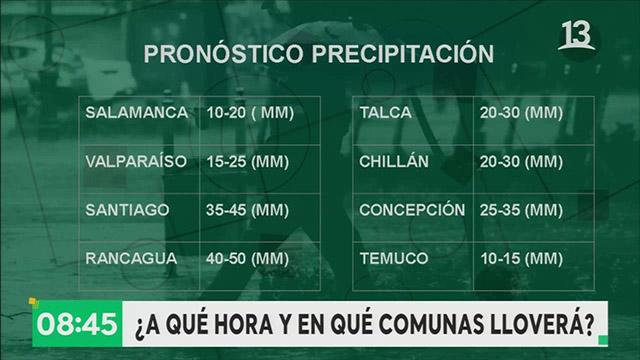 Desde esta noche se pronostica lluvia hasta el miércoles en la mañana lo que sería una caída de agua importante. Las precipitaciones podrían alcanzar desde la Región de Coquimbo hacia el sur concentrándose en Valparaíso, Santiago y Rancagua.