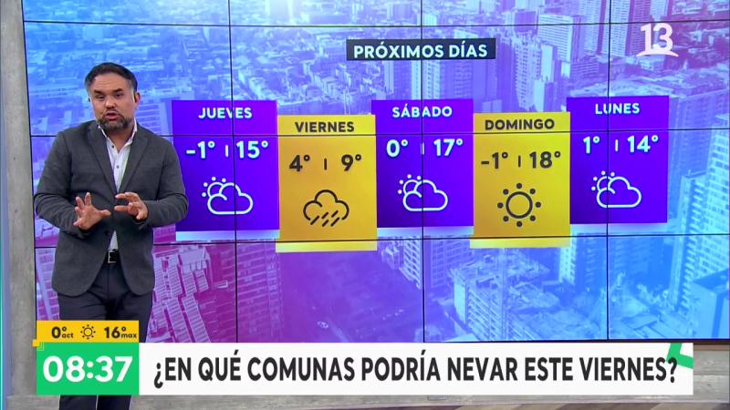 Se esperan precipitaciones para este viernes y agua nieve para algunos sectores de la zona oriente. Y atención, que el agua caída podría llegar a niveles no vistos desde el año 2018, esto es, unos 10 a 20 milímetros en el centro de Santiago.