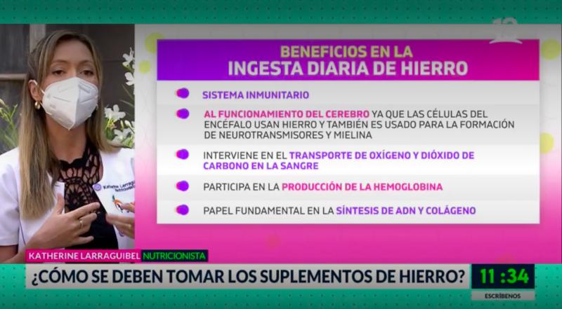 Por su lado, la presentadora, junto a una especialista informó sobre los beneficios de consumir hierro como suplemento y parte de nuestra dieta. El hierro mejora el sistema inmunitario además de contar con otras bondades.